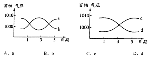 1、单选题 下图是不同天气系统过境前后的气压变化示意图,图中的四条曲线中,表示冷锋过境前后的气压变化曲线是