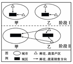 小题2:阶段Ⅱ乙地区的鲜花和蔬菜生产不仅供应当地市场还远销甲地区,而由于鲜花、