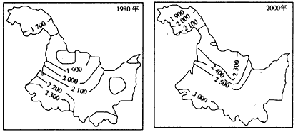 材料二下图是1980年和2000年黑龙江省积温(℃)等值线分布示意图。