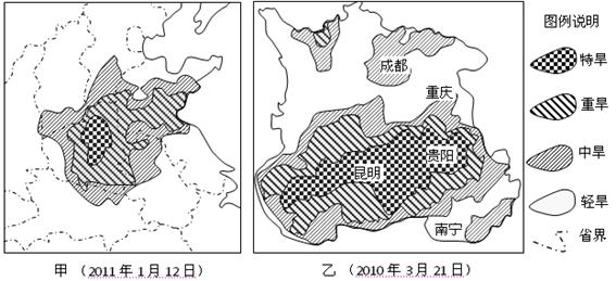 (2)甲、乙两地区的旱灾都会给其农业生产带来严重损失,但从发生时间看,?地区的旱灾对其农业生产影响更大,比较分析原因。(18分)