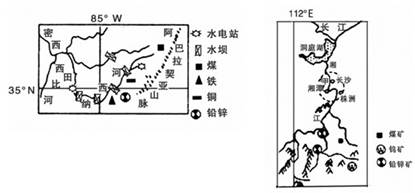 点评:本题以美国田纳西河流域和我国长江流域局部地区开发为背景考查区域开发存在的问题及我们应借鉴的成功经验,考查范围较广。答本题时应注意结合两流域的自然环境及自然资源。