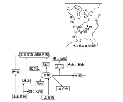 4、综合题 流域的开发对区域发展有重要意义,美国对田纳西河的开发与治理就是一个较成功