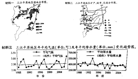 (3)根据材料三,分析三江平原地区气候变化对农业生产造成的影响。(8分)