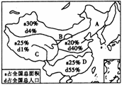 (2)A表示北方地区;D表示南方地区,故界线是秦岭—淮河;