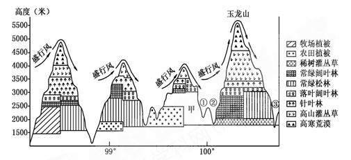 A.常绿阔叶林分布地区? B.河谷西侧山麓地区