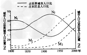 1、单选题 读“发达地区与欠发达地区的城市人口和城市化水平对比”图,完成1~2题。