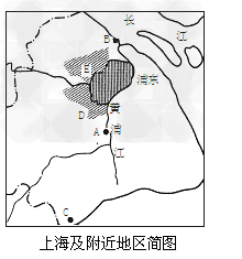 4、综合题 读“上海及附近地区简图”,回答问题。