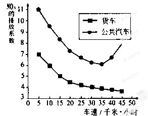 本题解析:本题考查资料分析运用能力(城市环境)。利用图示车速35KM/小时,公共汽车和货车产生的NOx的排放量都较低。