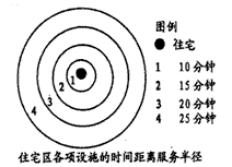 4、单选题 ? 文化设施的服务半径是指各项设施所服务的空间距离或时间距离。文化设施的分级与服务半径的确定应考虑两方面的因素:一是居民的使用频率,二是设施的规模效益。以学校为例,中学属于城市级和居住区级项目,其服务半径可控制在1000米之内。小学属于综合小区级项目,相邻社区的学生以不跨越城市干道为宜,服务半径控制在500米以内。读图及所给材料回答(1)——(2)题。