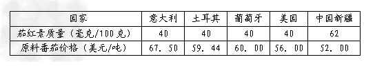 (2)原料番茄的茄红素含量高,品质好;原料番茄价格低,竞争力强