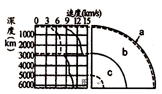 读“地震波波速与地球内部构造图”(图1),回答问题。