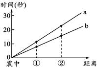 C.a线表示纵波走时曲线图,b线表示横波走时曲线图