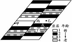 3、单选题  左下图为某地水平地质剖面图。某日发生地震(丙地的地表为震中),根据甲、乙两地观测站的地震波记录,绘出了地震横波与纵波的走时曲线图(右下图),据此回答下列各题。