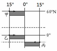 小题1:纬线的长度由赤道向两极递减,也就是说纬线跨越的经度相同的情况下,纬度越高长度越短。从图中可以看出,甲地纬度最高,甲地到达0°经线的距离最短,乙地纬度最低,到达0°经线的距离最长。因同时到达,飞行时间相同,速度最慢的也就是距离最短的。故选A。