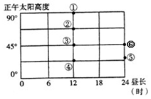 3.⑤位置表示昼长为24小时,即极昼,正午太阳高度约23.5°。有极昼现象,则