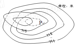 1.图中P等高线的数值最有可能为2.图示地貌最有可能为