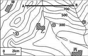 (6)甲、乙、丙三个乡村聚落,最有可能发展为城市的是________,试分析主要原因。