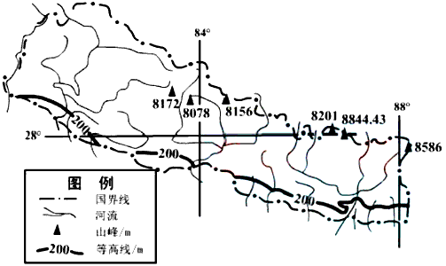 3、综合题 下图所示国家人口稠密,经济以传统农牧业为主,森林覆盖率为29%。完成下列要求。