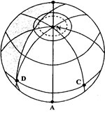 2、综合题  (12分)下l到示意某I-1昼夜分布状况,阴影部分表示黑夜,地球扁率忽略不计。图中虚线为北极圈,此时D点地方时为6时。读图回答有关问题。