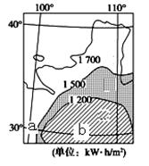 4、单选题 读我国局部地区太阳年辐射总量(单位:KW.h/m2)分布图,完成以下列问题。