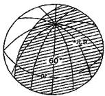 3、综合题 读地球光照图(阴影部分表示黑夜,图中晨昏圈与经线圈相交成23°26′的角),回答下列问题。(10分)