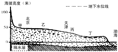 4、单选题 读北京一天津地形及地下水位剖面图,回答1—3题。