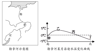 4、单选题 读下图,回答:勒拿河下游地区多沼泽,右图中的水温分布特点会导致一种沼泽形成因素的产生,则该因素最常出现的河段是