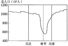 本题解析:直接从图示可以看出,春节期间城市人口大幅度下降,应为民工返乡过节的影响。