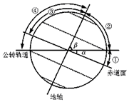 本题解析:黄赤交角是指黄道面与赤道面的交角,故为图示①。