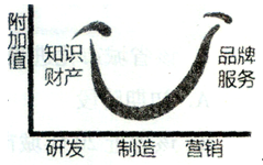 材料二 下图是微笑曲线图,“微笑曲线”理论认为企业只有不断往附加价值高的区块移动与定位才能持续发展与永续经营。