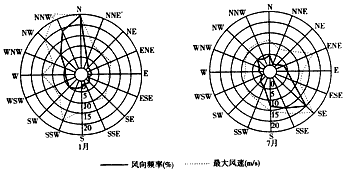 1、单选题 读大连风向玫瑰图,完成1—3题。