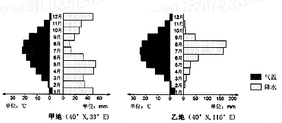 5、单选题 下图为甲、乙两地的气候资料图。据此回答下列各题。