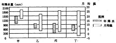 1、单选题 下图表示四种气候类型的月均温和年降水量状况,读图回答下题。