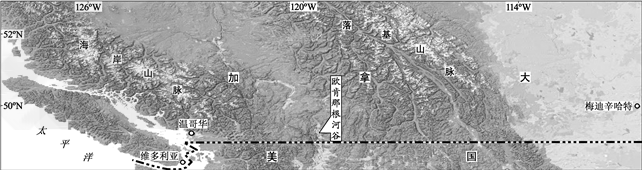 2、综合题 加拿大地广人稀,西南部地区地形复杂,欧肯那根河谷是世界著名的冰酒产地。根据加拿大西南部某地区示意图,结合所学知识,完成(1)-(4)题。
