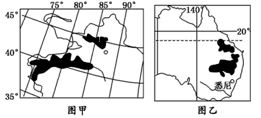 5、多选题 读我国新疆棉花分布示意图(图甲)和澳大利亚棉花分布示意图(图乙),完成1—2题。
