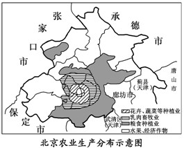 3、单选题 下图中,影响北京农业生产布局的最主要区位因素是