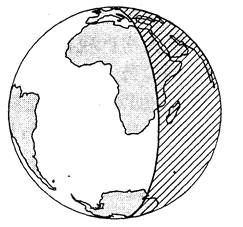 1、综合题 (12分)读地球日照图(阴影表示黑夜),回答问题。