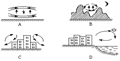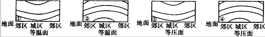2、下面四幅图中能正确表示该城市热岛效应现象的是