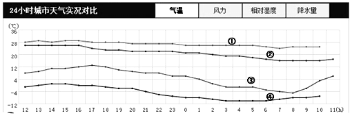 材料一 某日哈尔滨、拉萨、上海、深圳四城市24小时(北京时间)气温实况图。