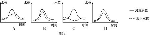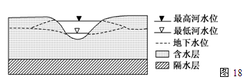 小题1:四幅图中能正确反映河水位与地下水位关系的是(?)