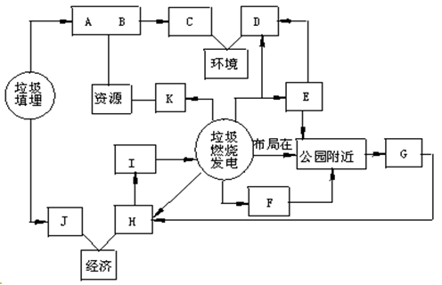 垃圾燃烧发电→经济收入增加→增加收入,再投资建电厂、绿化及废物处理