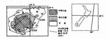 (1)概括甲岛年太阳总辐射量的分布特点,并分析原因。