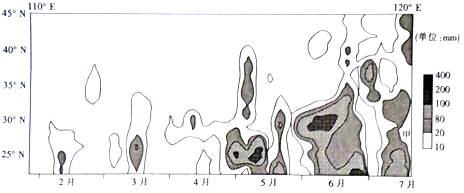2、单选题 读我国局部区域平均降水量分布图,回答下列各小题。