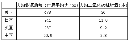3、多选题 下表内容为某年中日美英四国人均能源消费和人均二氧化碳排放量的有关数据,回答1—2题。