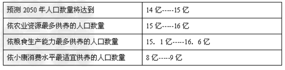 1、单选题 20世纪90年代以来有许多学者从不同角度对我国人口数量及人口容量进行了预测,表中内容为一些学者的预测数据,读下表完成1—2题。