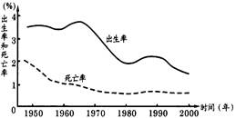 4、单选题 读“我国人口出生率与死亡率”统计图分析回答问题。