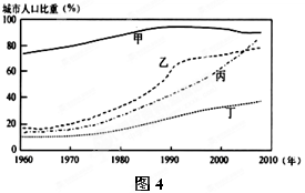 1、单选题 读“四国城市人口比重变化示意图”(图4),完成问题。