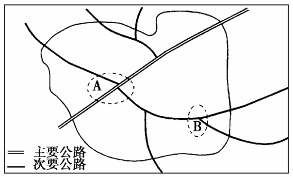本题解析:从图中可以看出,A、B两级城市的交通位置、范围大小、等级高低各不相同,据此推论各题。