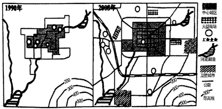 5、单选题 下图是“我国某城市1990年和2008年的功能区分布简图”,读图完成1—2题。