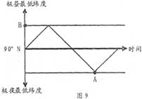 2、单选题 图9为北半球极昼、极夜最低纬度在一年内的移动路径图。读图回答问题。